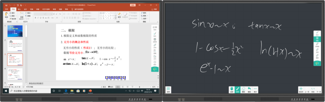 PPT+板书:产品能实现一屏播放PPT,一屏记录教学笔记,且支持屏幕内容相互甩屏切换。
