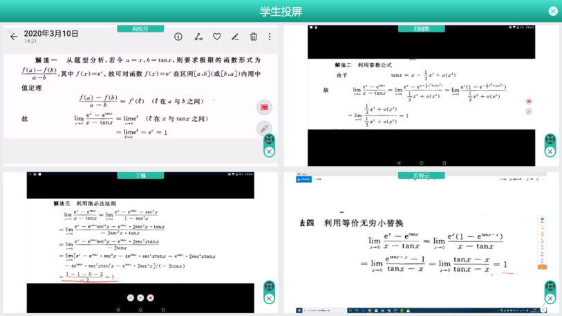 学生投屏:学生可以将自己的答案投送到大屏,教师可以单个点评或对比讲解。