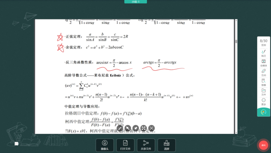 截屏:教师可将屏幕上的批注通过【截屏】分发给学生。录屏:教师也可使用【录屏】功能录制整个课堂授课过程。