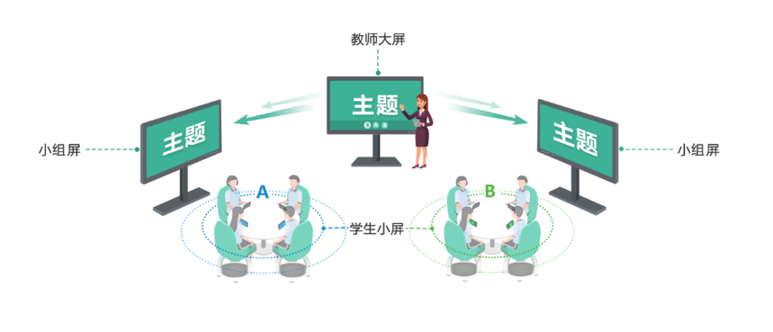 教师通过教师大屏将主题分发到每个小组中,学生通过小组屏或学生终端均可查看小组主题。